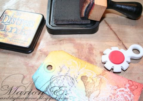 Stamp Swirls. I used Aged Mahogany on tag... and repeat cleaning part as above